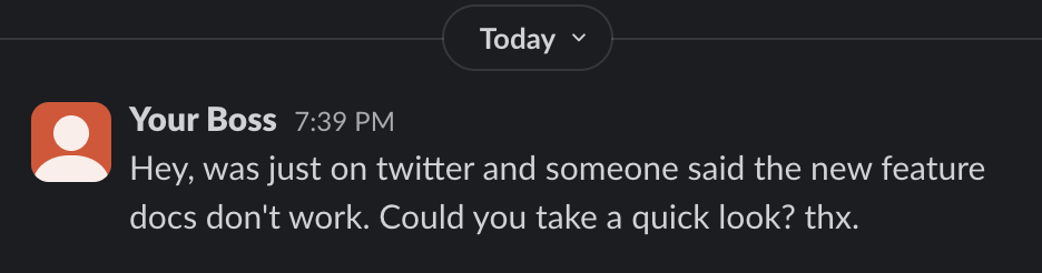 Or your boss reaches out to you on slack and asks you to “take a quick look.”